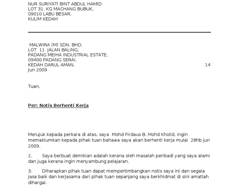 - Contoh Surat Rasmi Perletakan Jawatan Sebagai Peng...